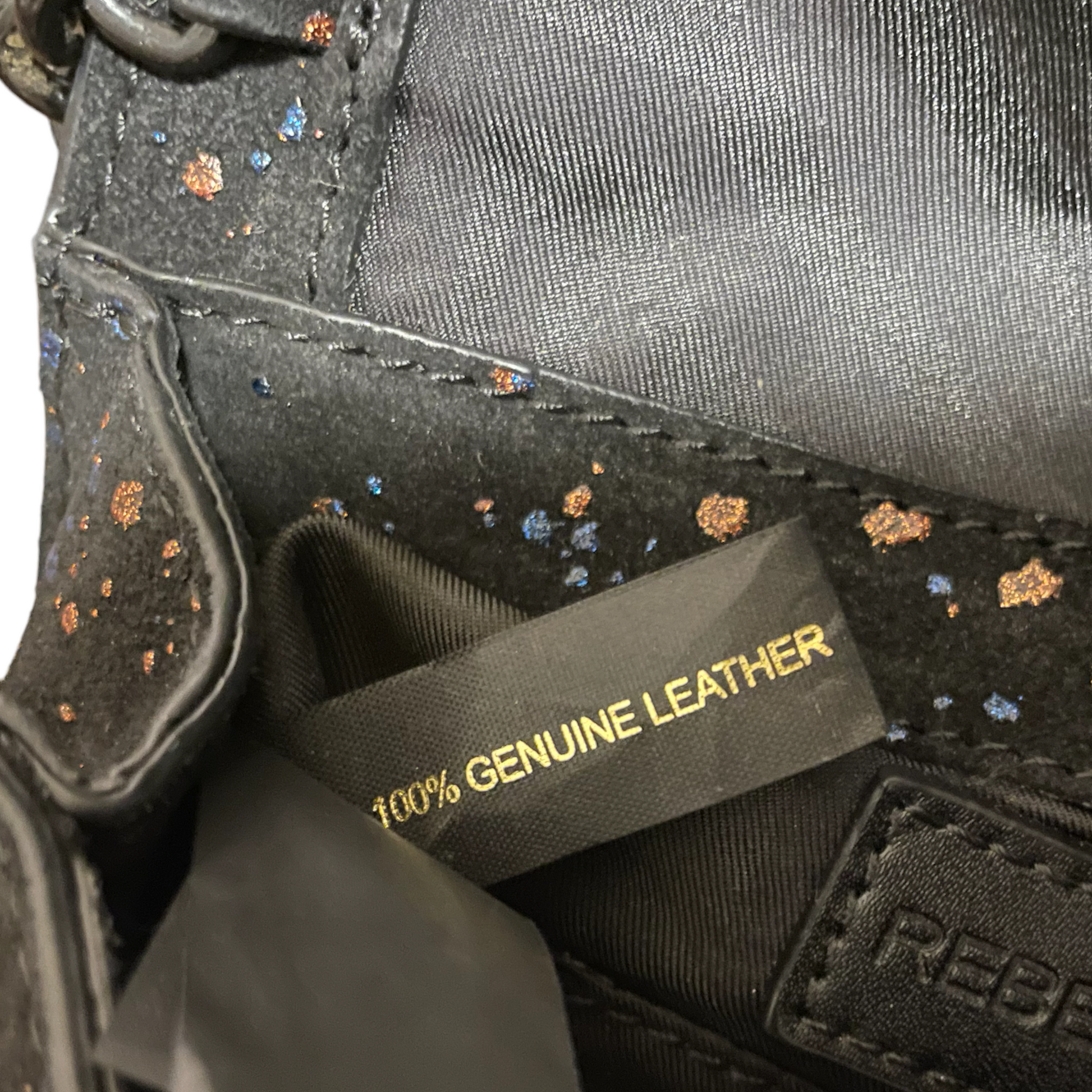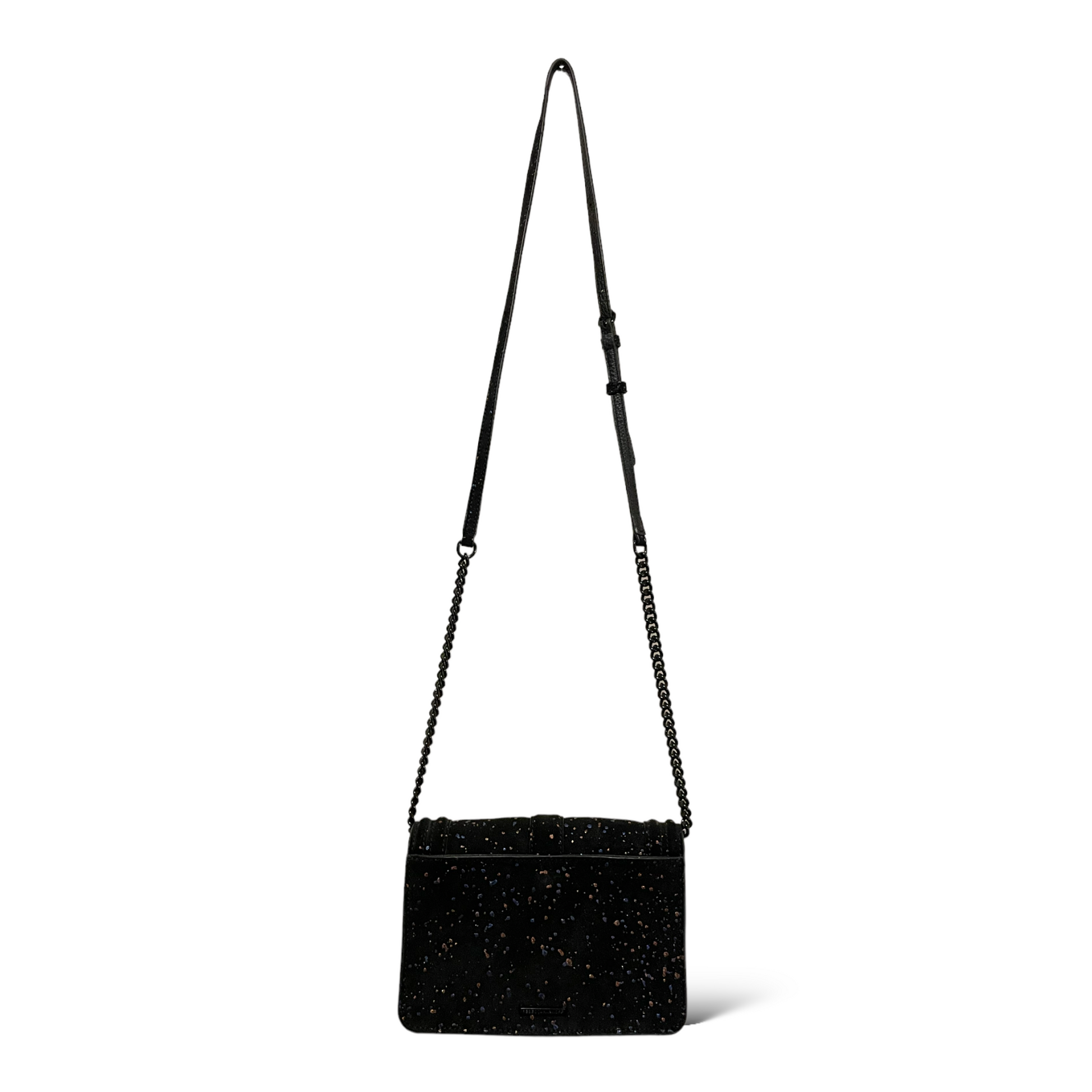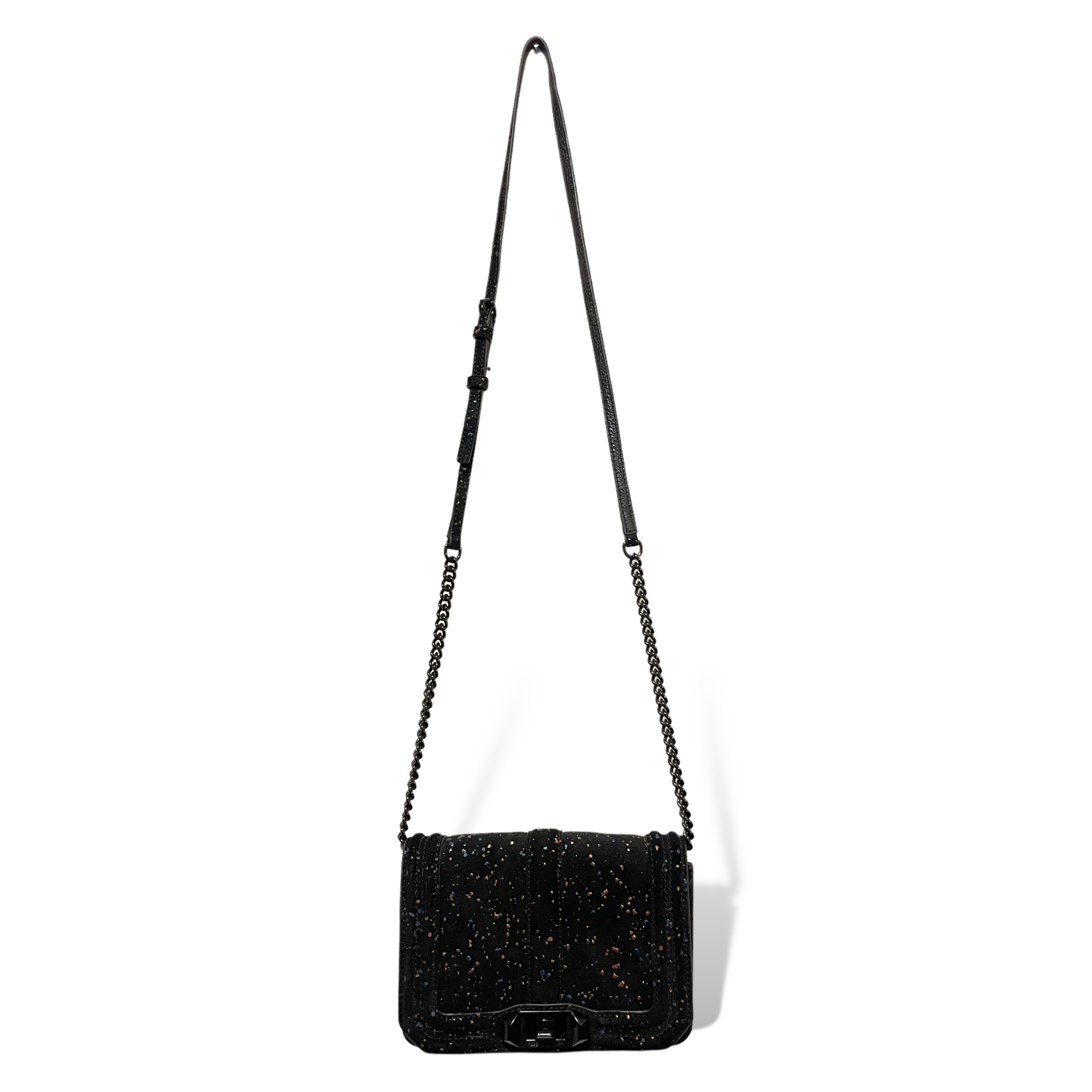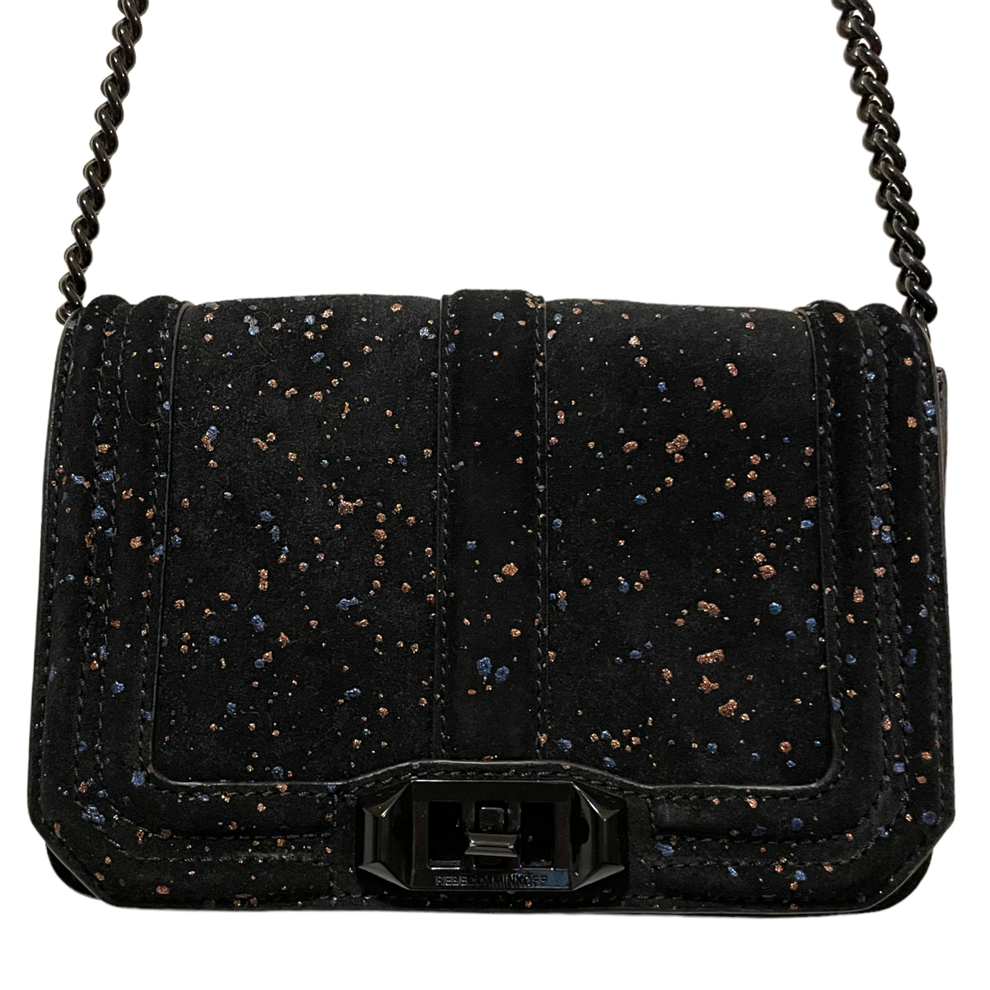 Rebecca Minkoff Black Hardware & Suede Crossbody Bag with Cobalt Blue & Rose Gold Splatter