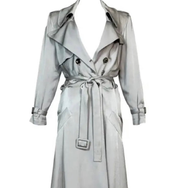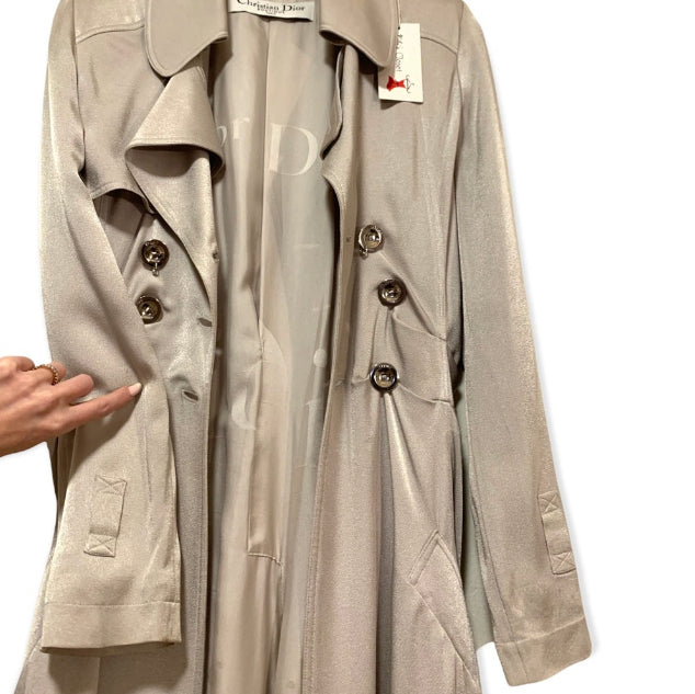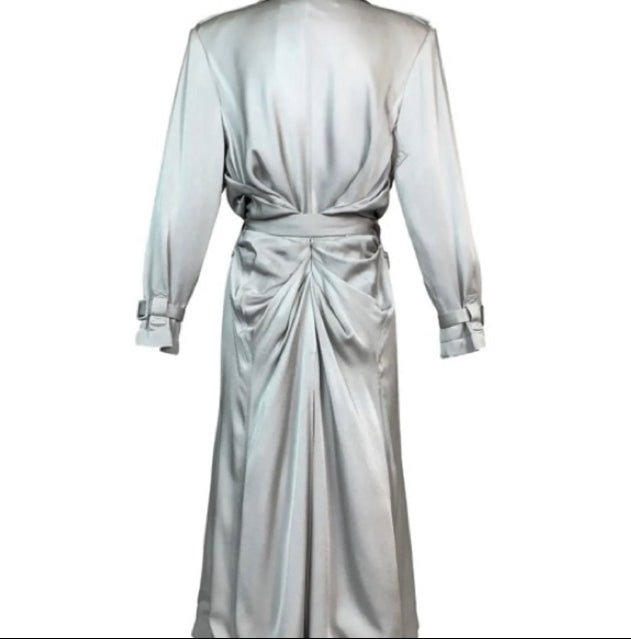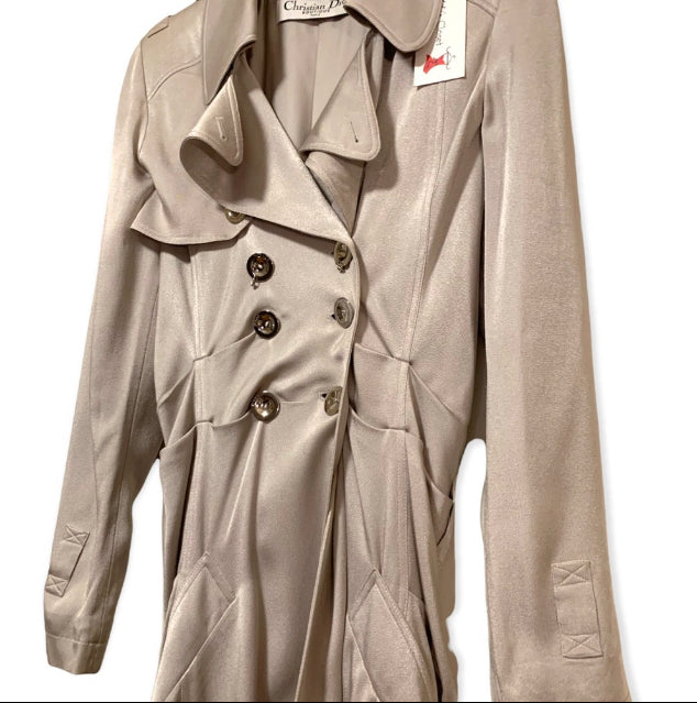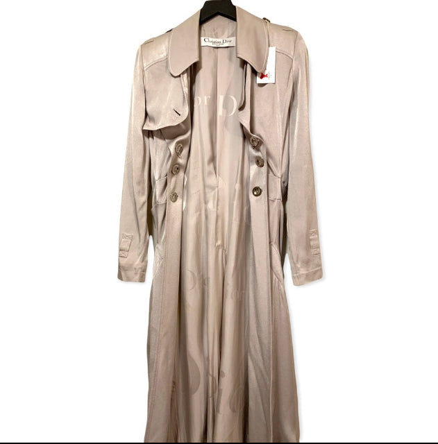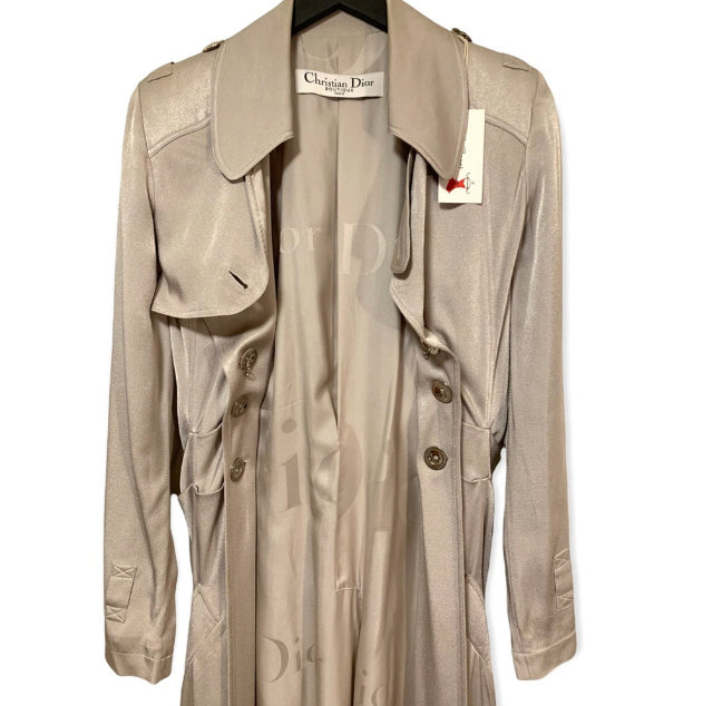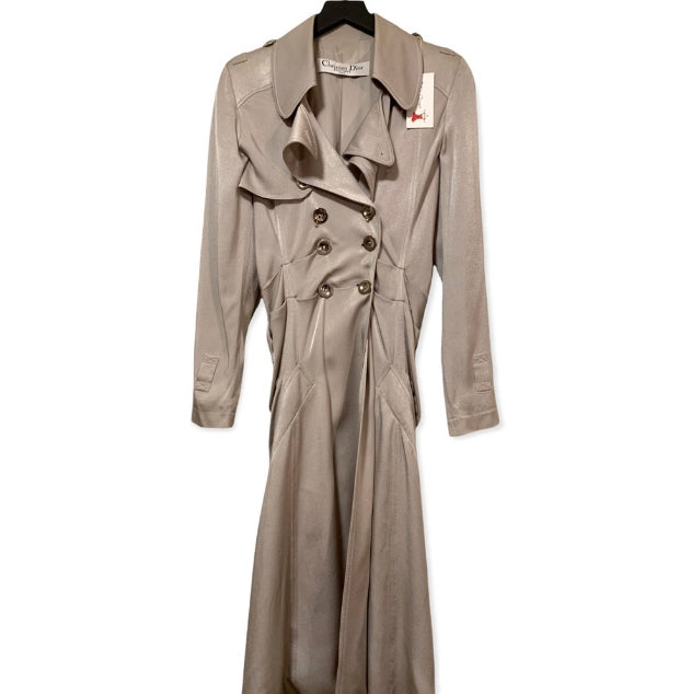 S/S 2004 Christian Dior by John Galliano Silver Satin Trench Coat Jacket