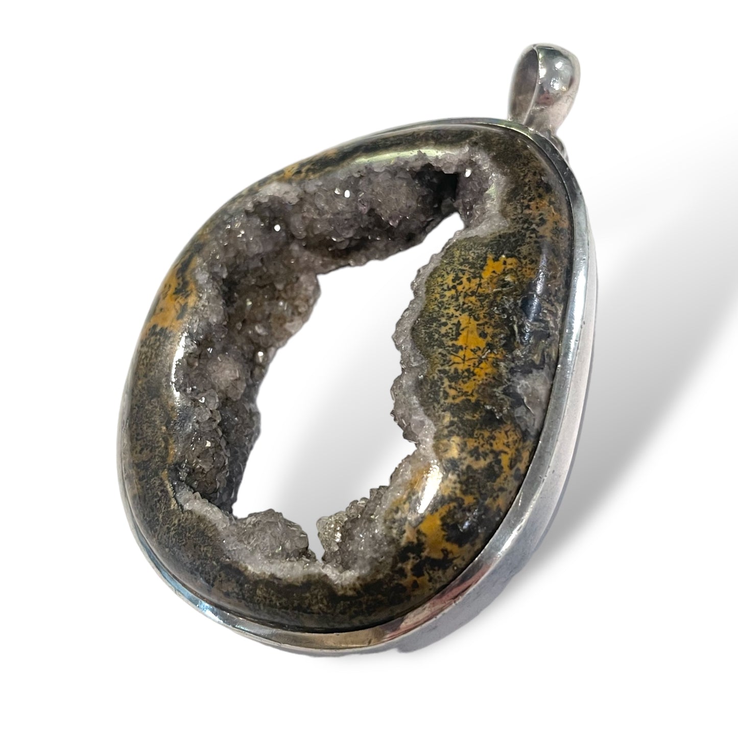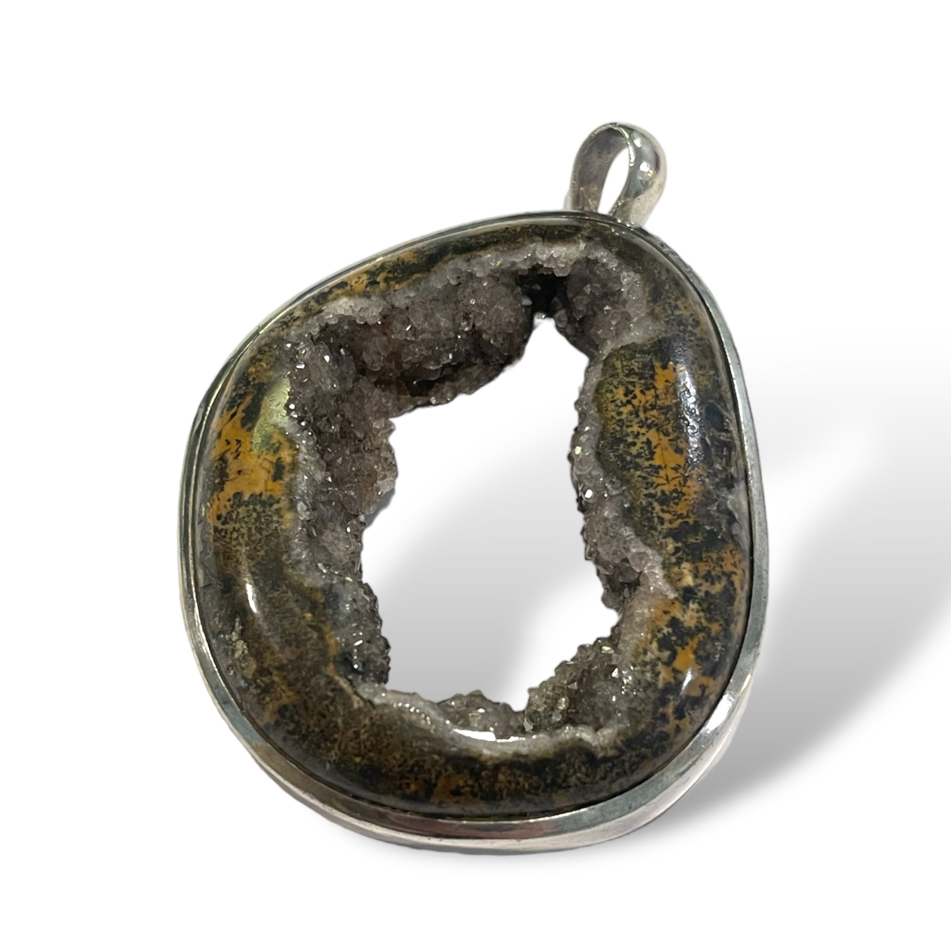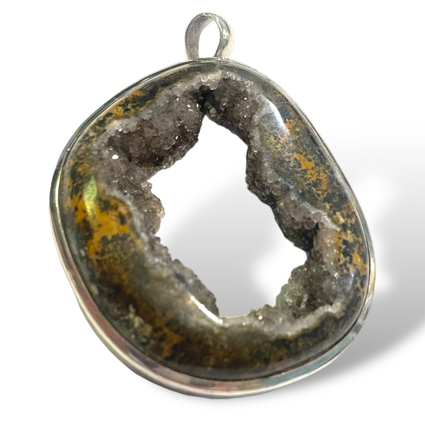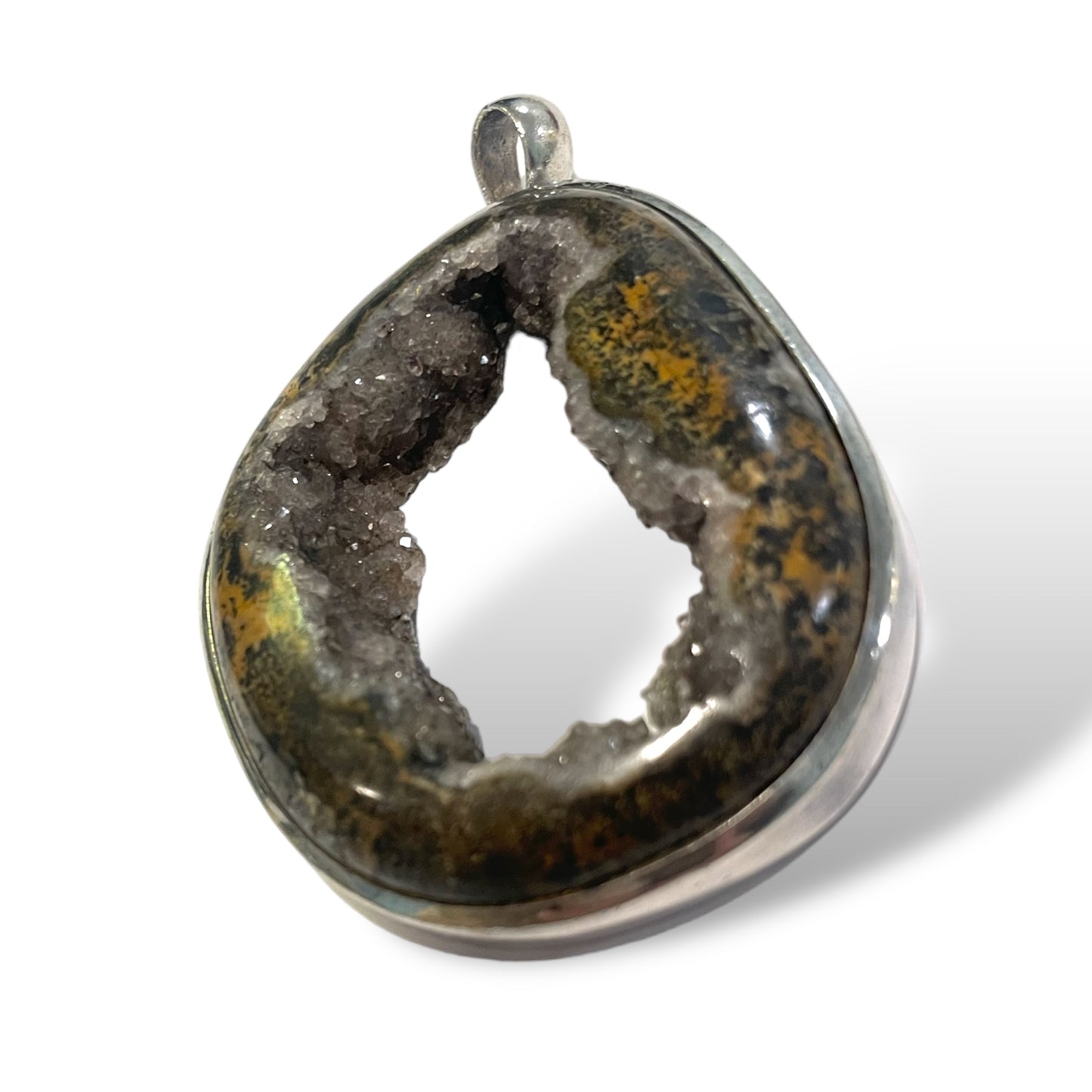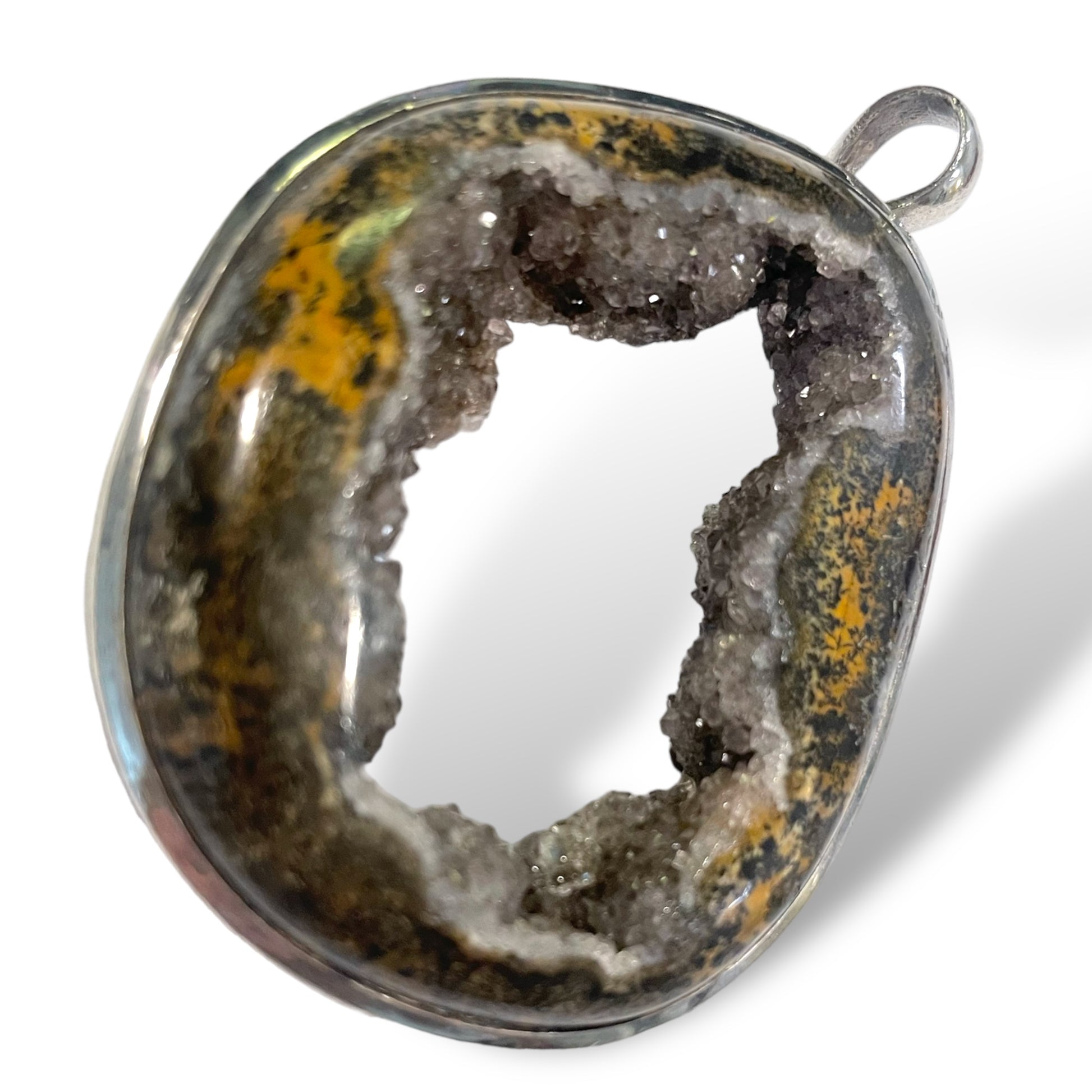 Semi-Precious REAL GEODE set in STERLING SILVER Pendant— Custom Made by Lazaro