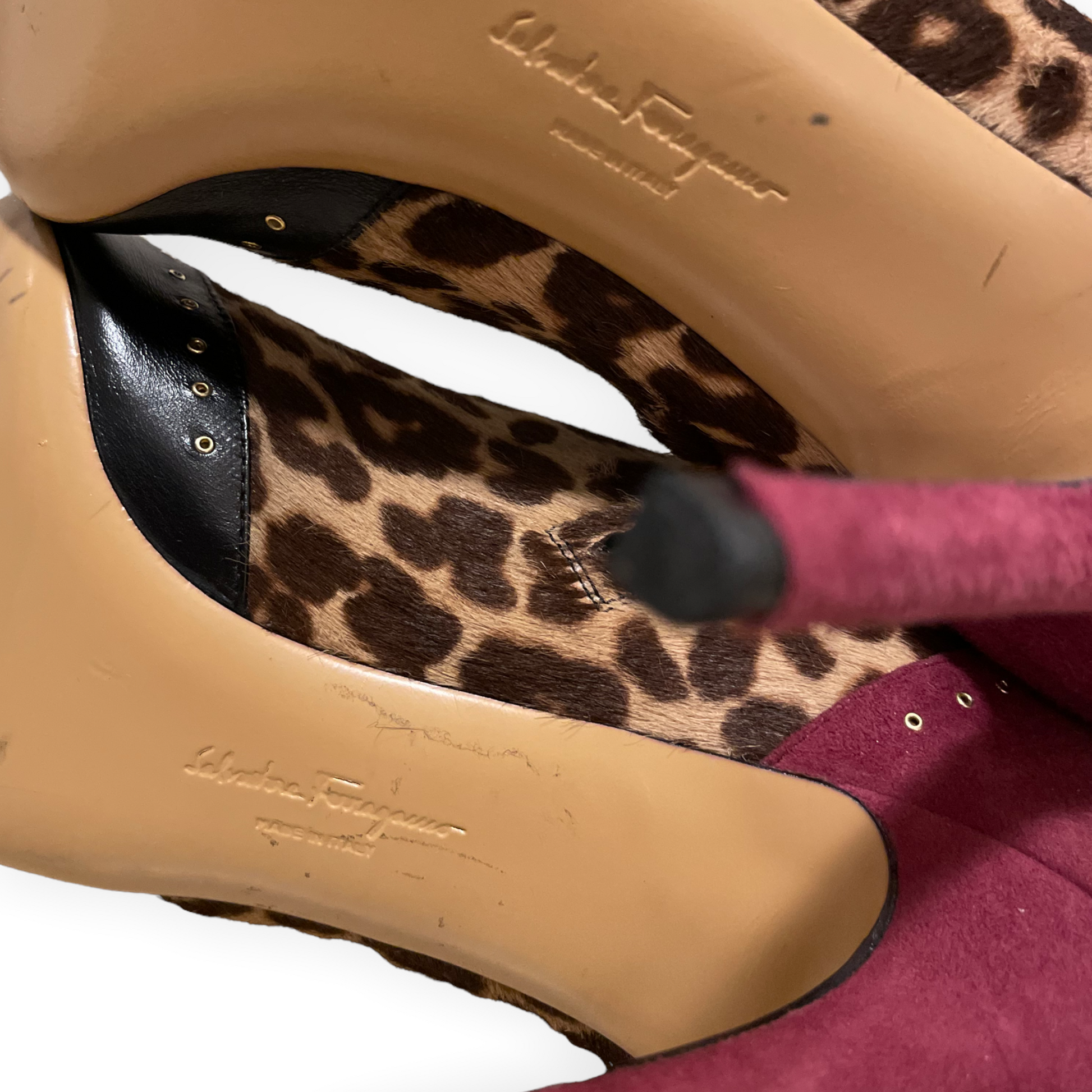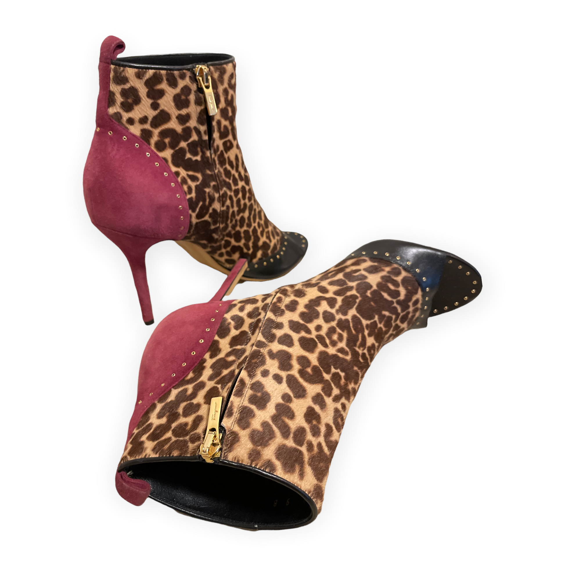 SALVATORE FERRAGAMO Calf Hair Animal Print Ankle Booties