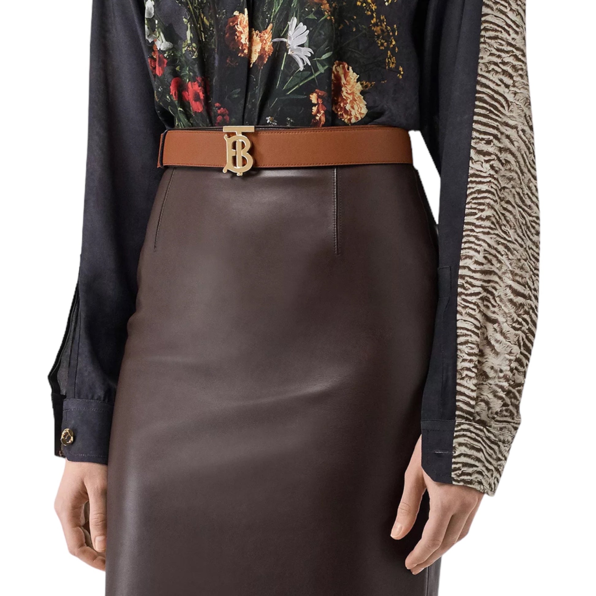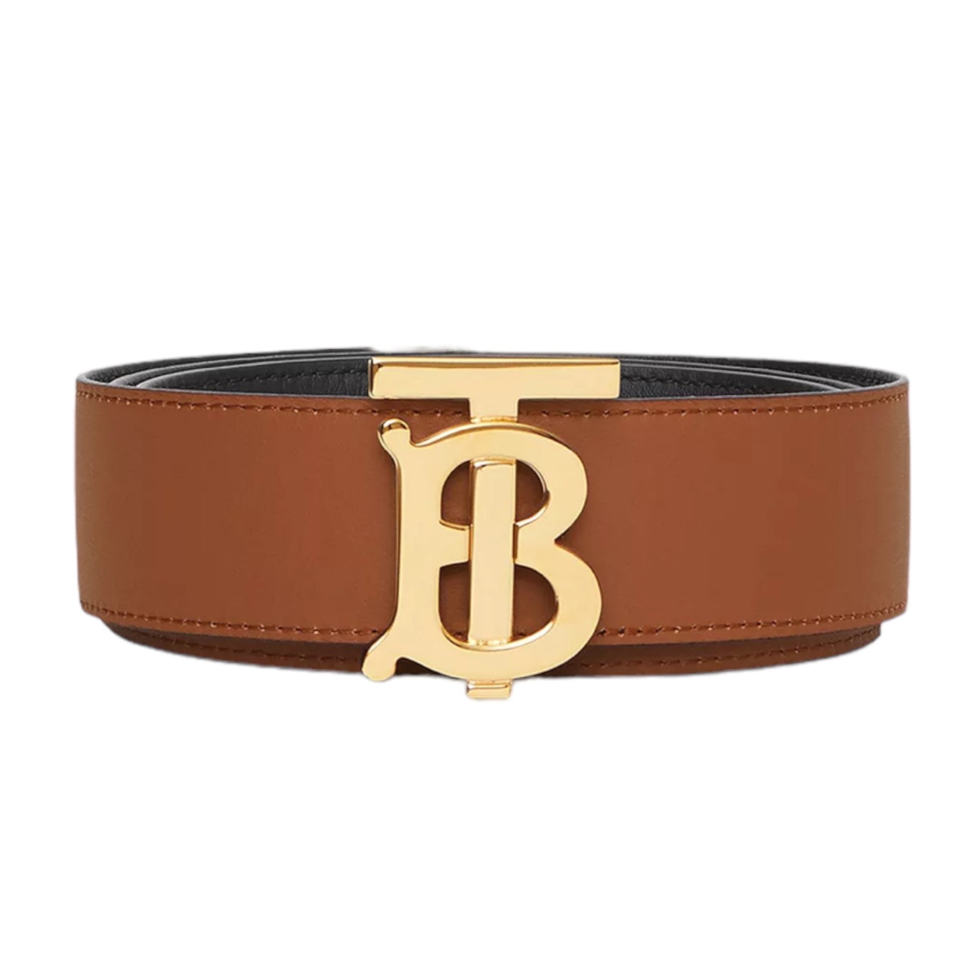 Burberry Gold-Tone TB Logo Buckle Reversible Black/Brown Leather Belt