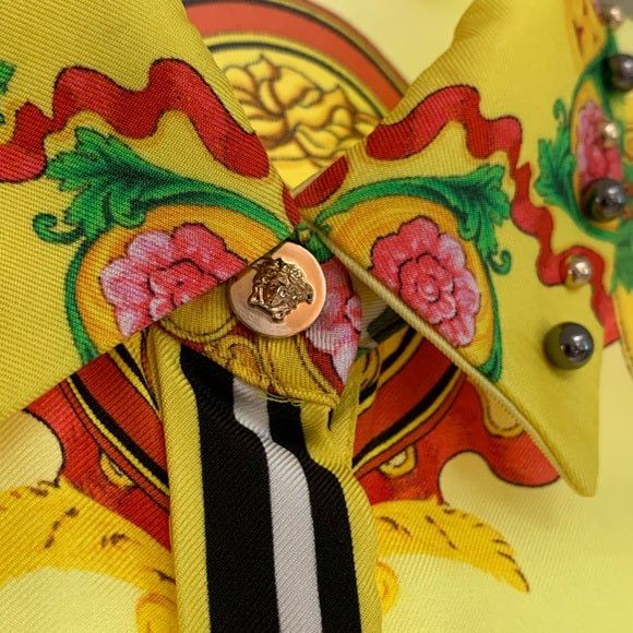 VERSACE women’s silk blouse Size: 2 US 36 EU Includes: Tags & Extra Versace Face Button/Studs