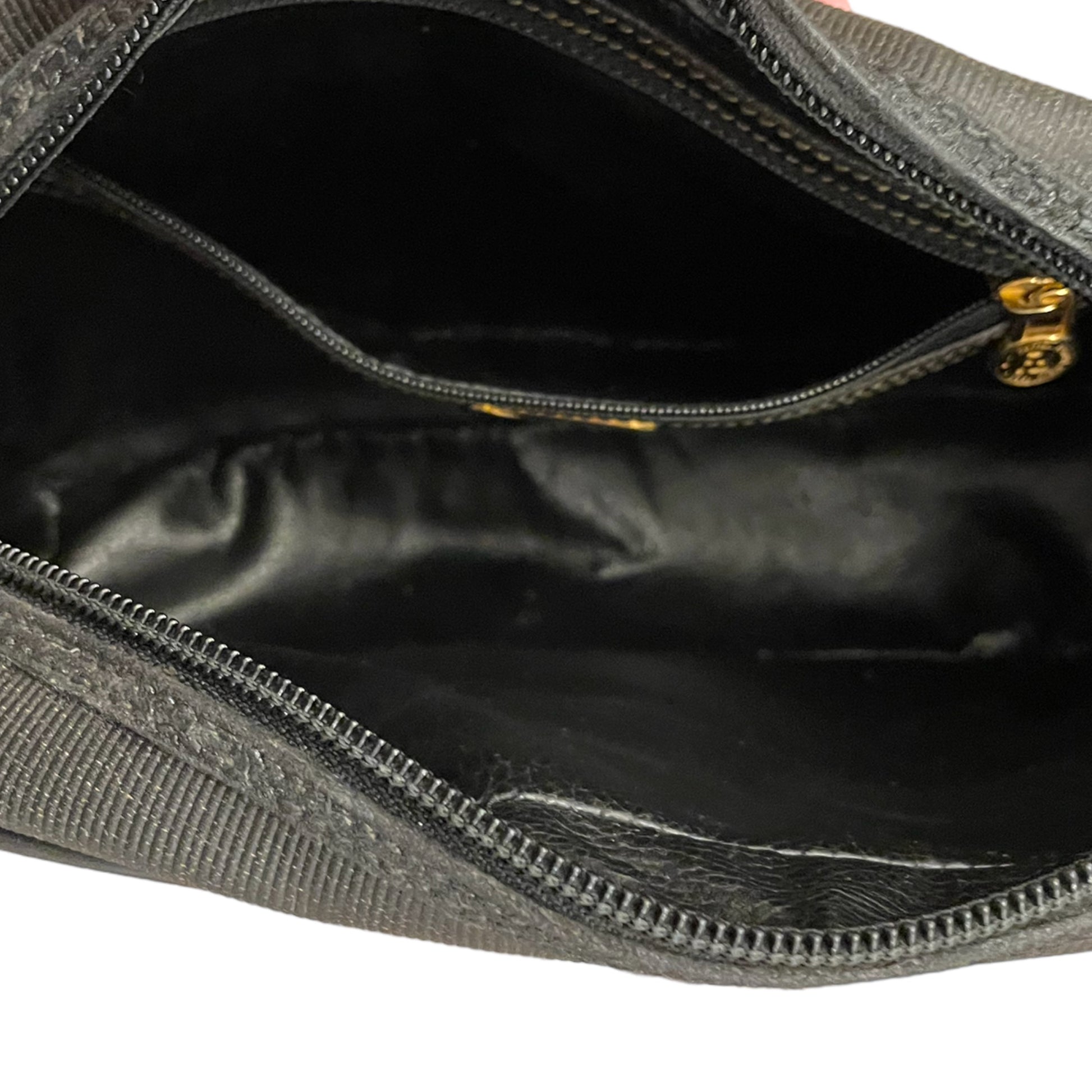 ***Shoulder Strap has been Removed due to stiffness and cracking hence why I recommend using this piece as a clutch or cosmetic case. Aside from the leather piping peeling (has been touched up) the exterior is in great condition as well as the in-tact interior leather lining throughout***