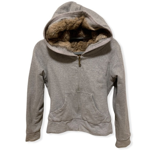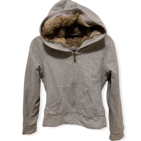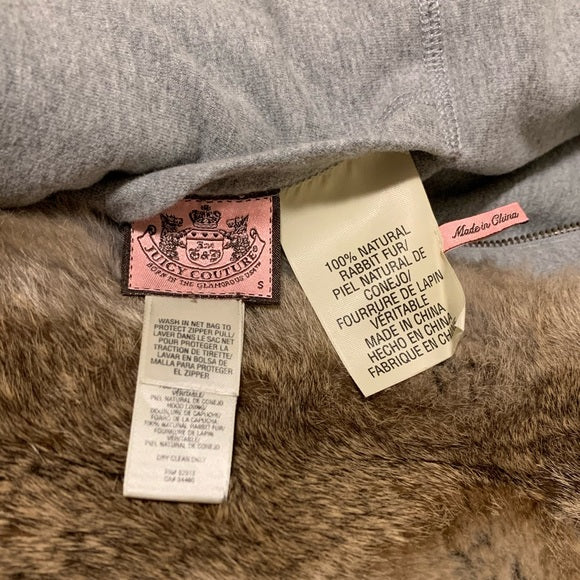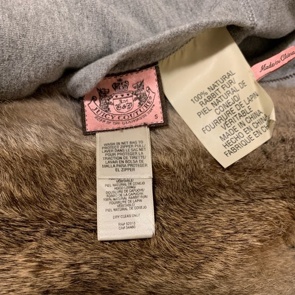 Juicy Couture Heather Gray Reversible Rabbit Fur fleece zip up hoode jacket.
